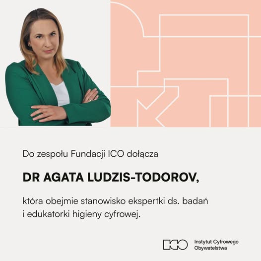 Dr Agata Ludzis-Todorv dołącza do zespołu Fundaci Instytut Cyfrowego Obywatelstwa, jako ekspertka ds. badań i edukatorka higieny cyfrowej.